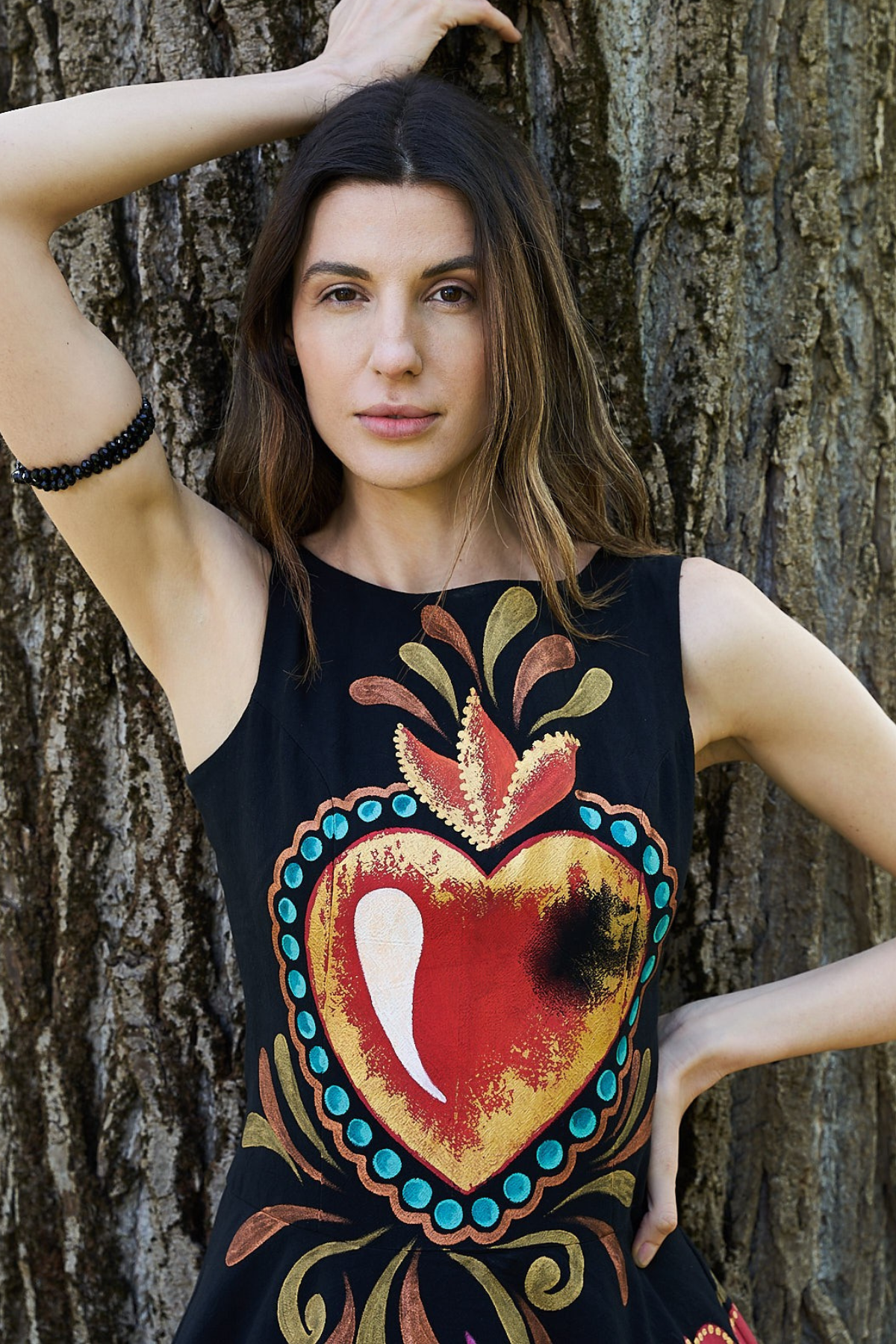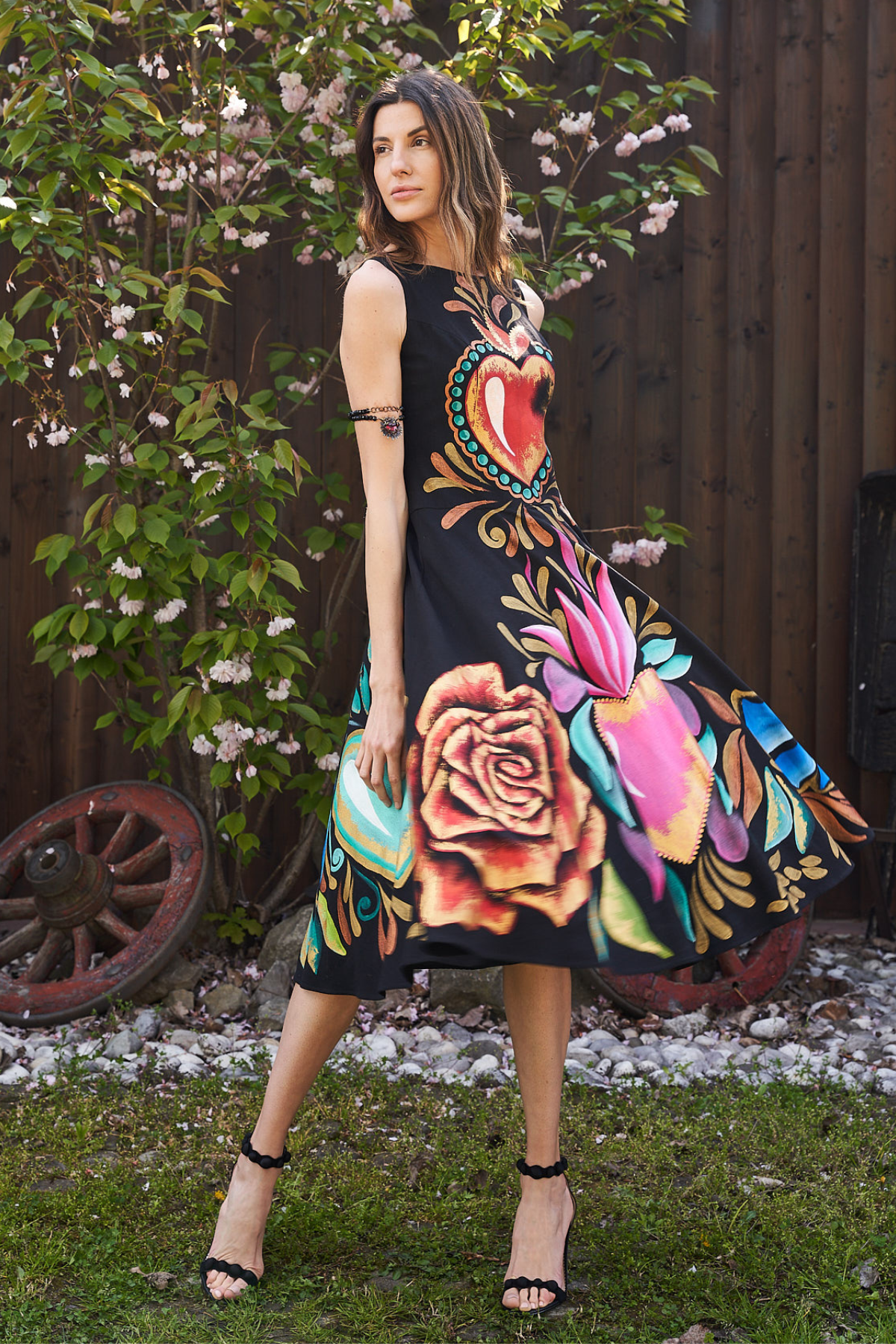 ABITO MIDI A CAMPANA DIPINTO A MANO - CORAZÓN SAGRADO