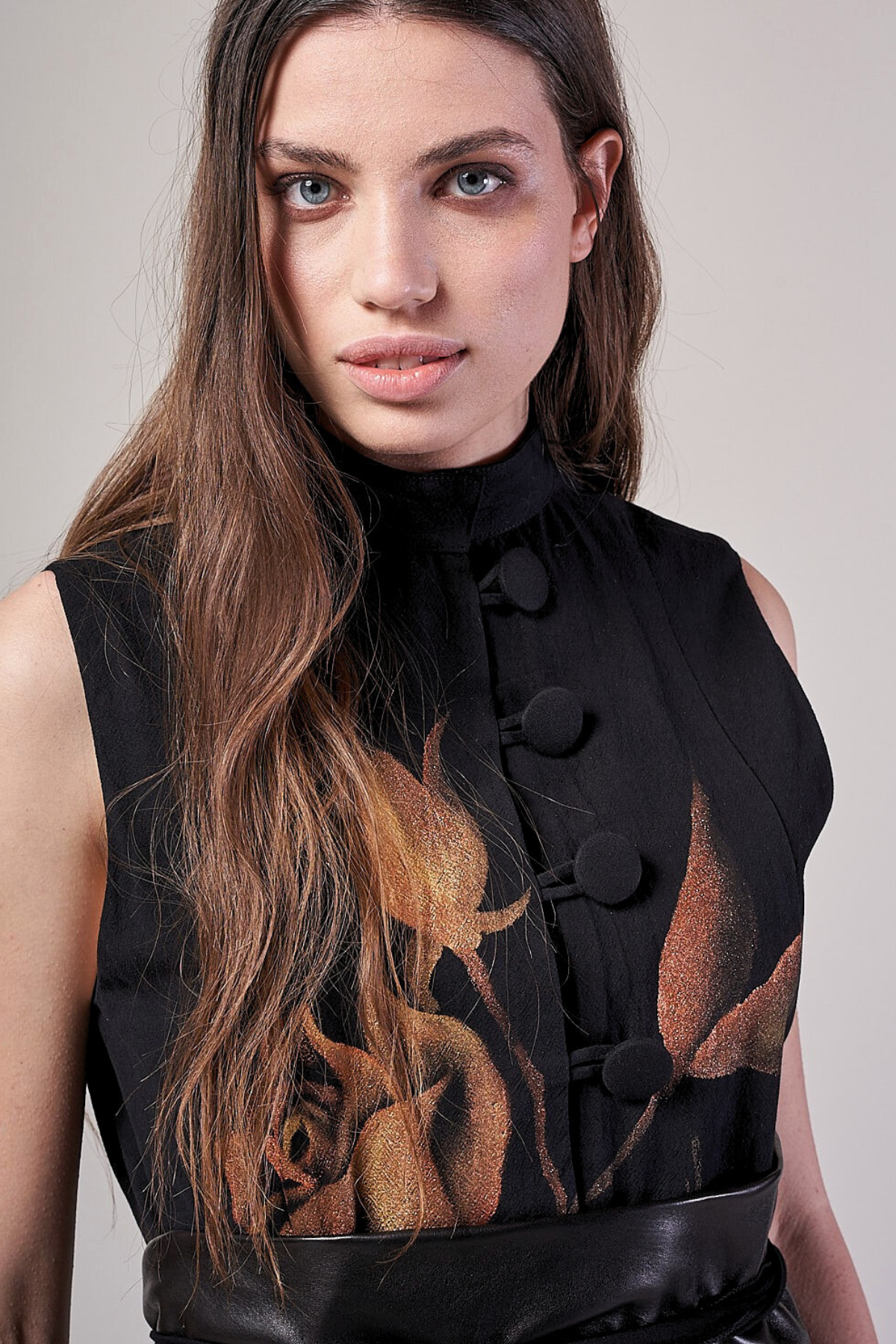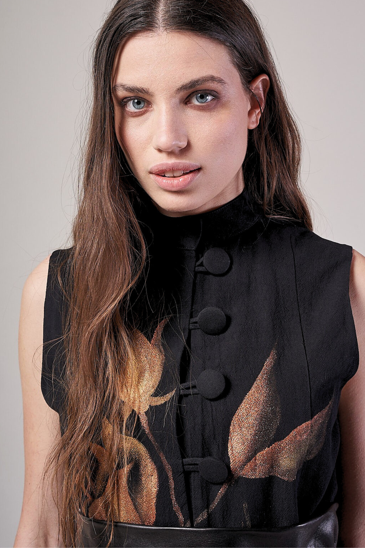 ABITO LUNGO COLLETTO ALLA COREANA DIPINTO A MANO