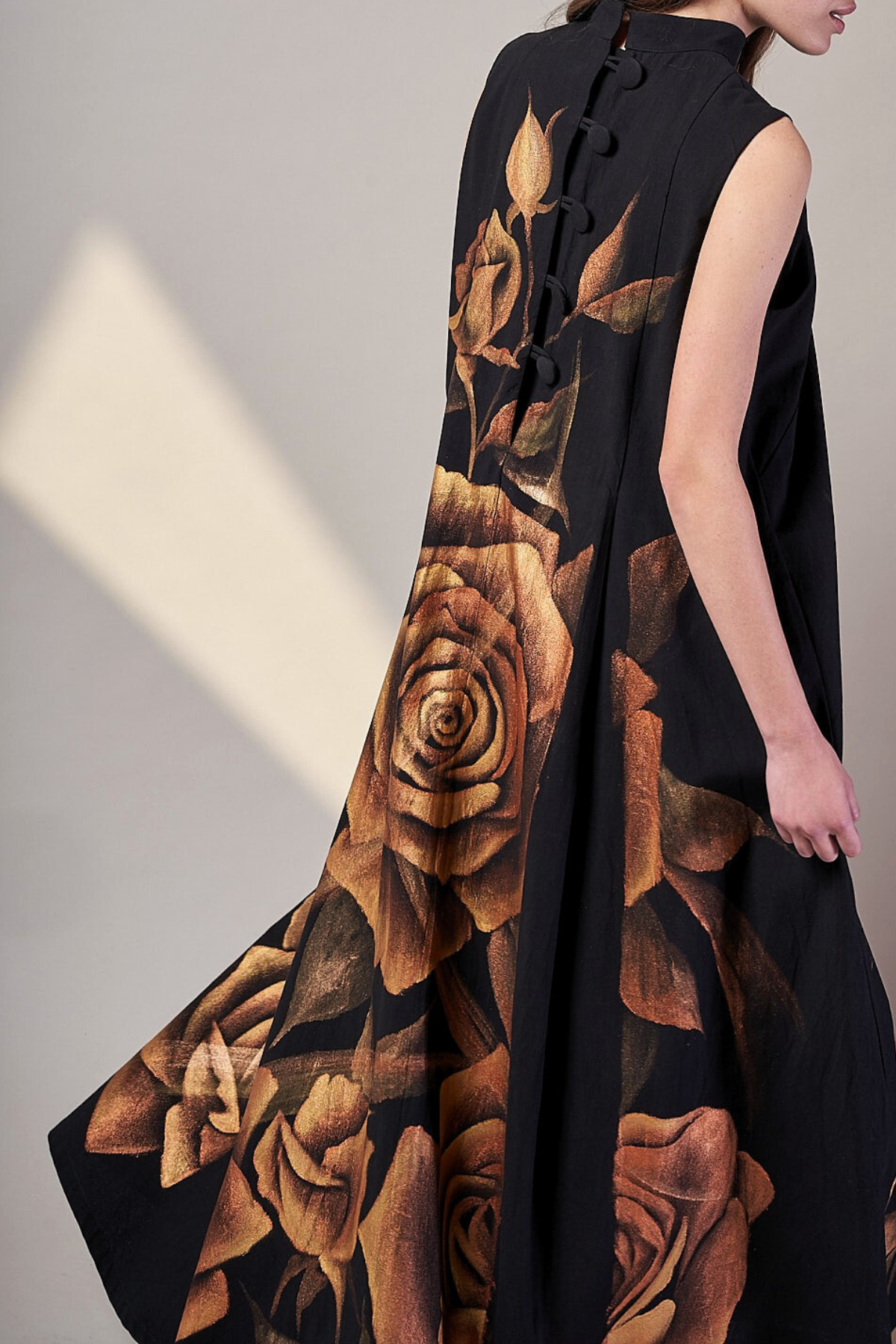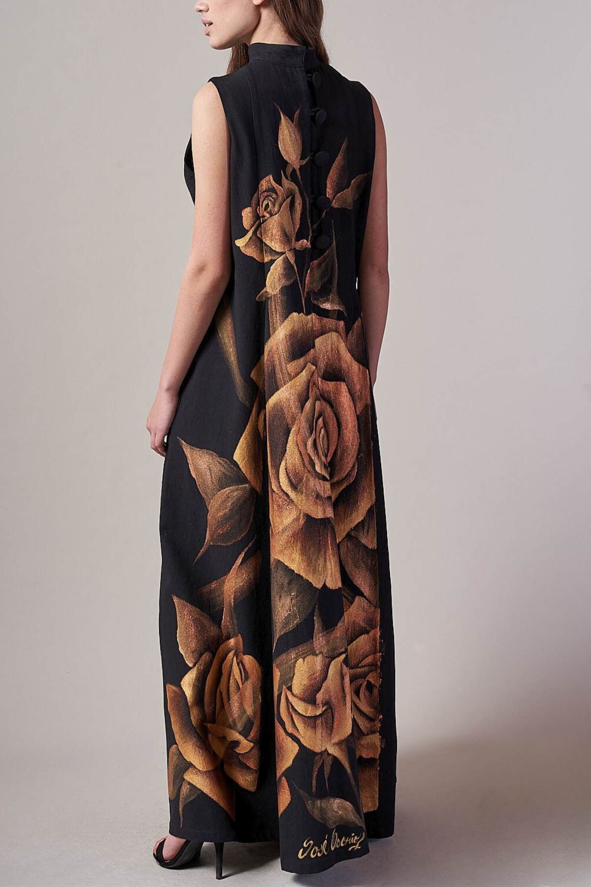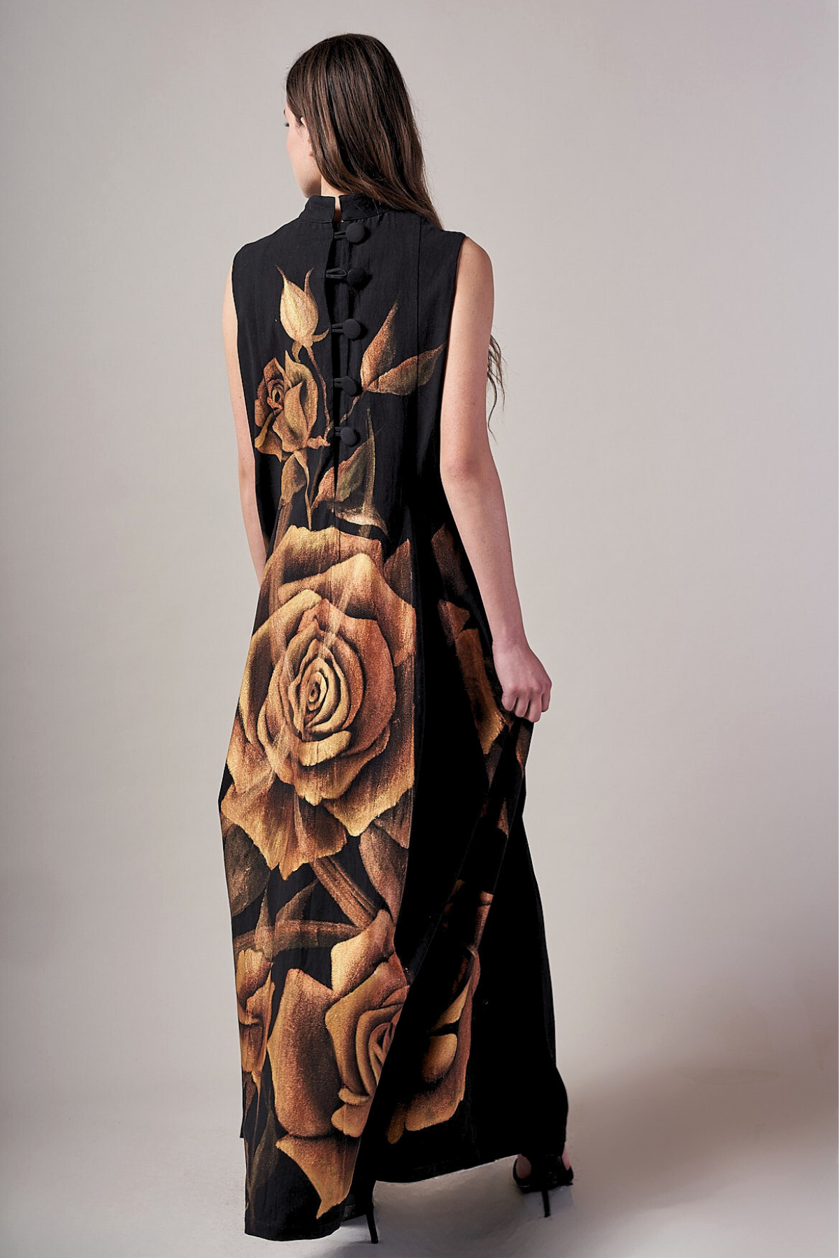 ABITO LUNGO COLLETTO ALLA COREANA DIPINTO A MANO - ROSAS ORO