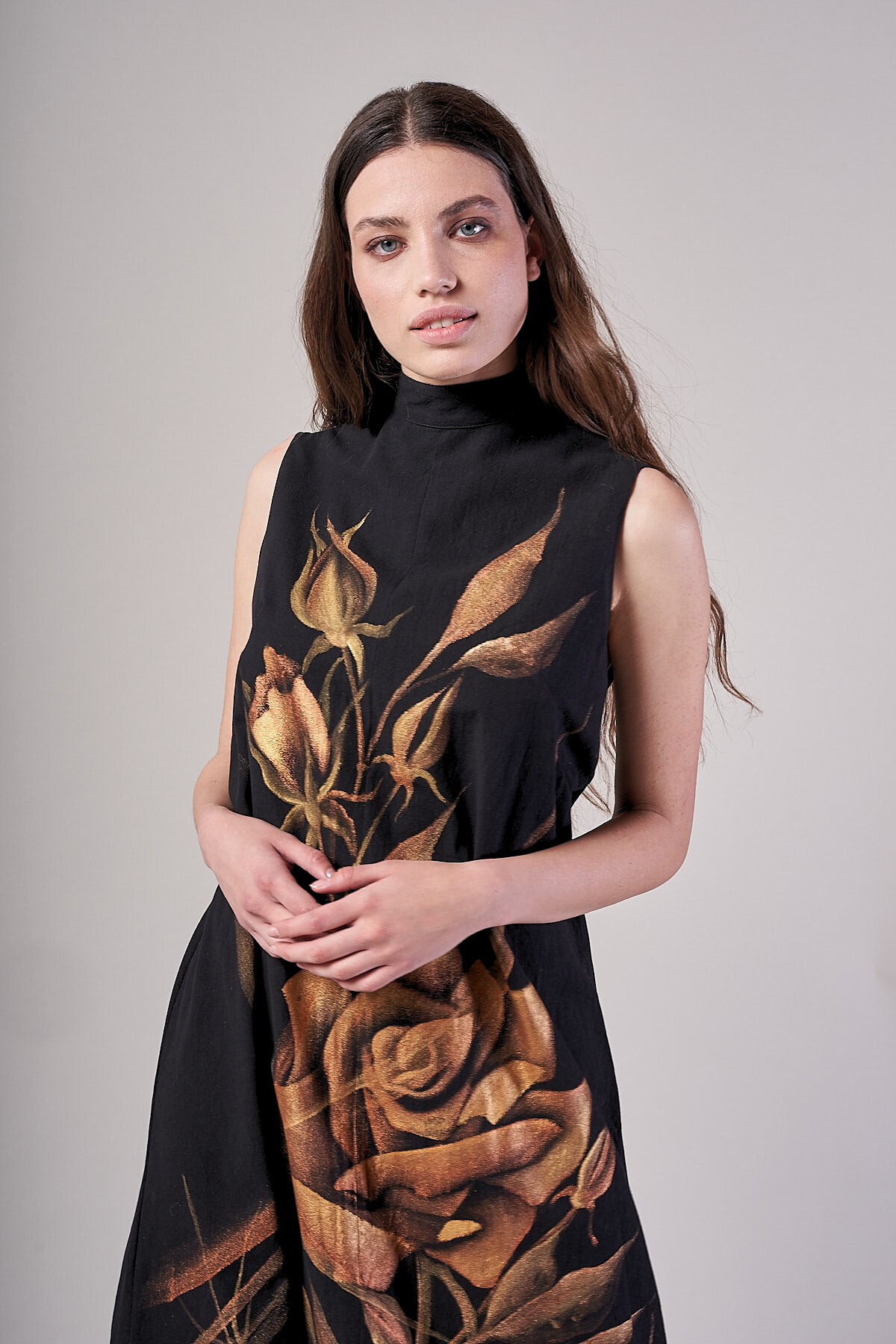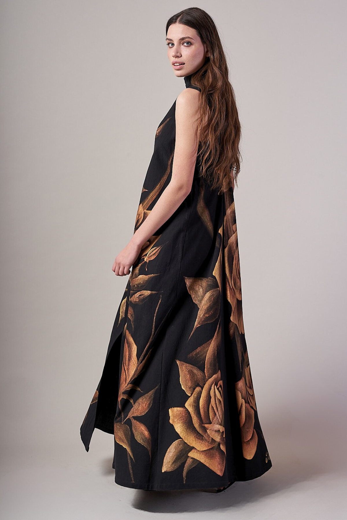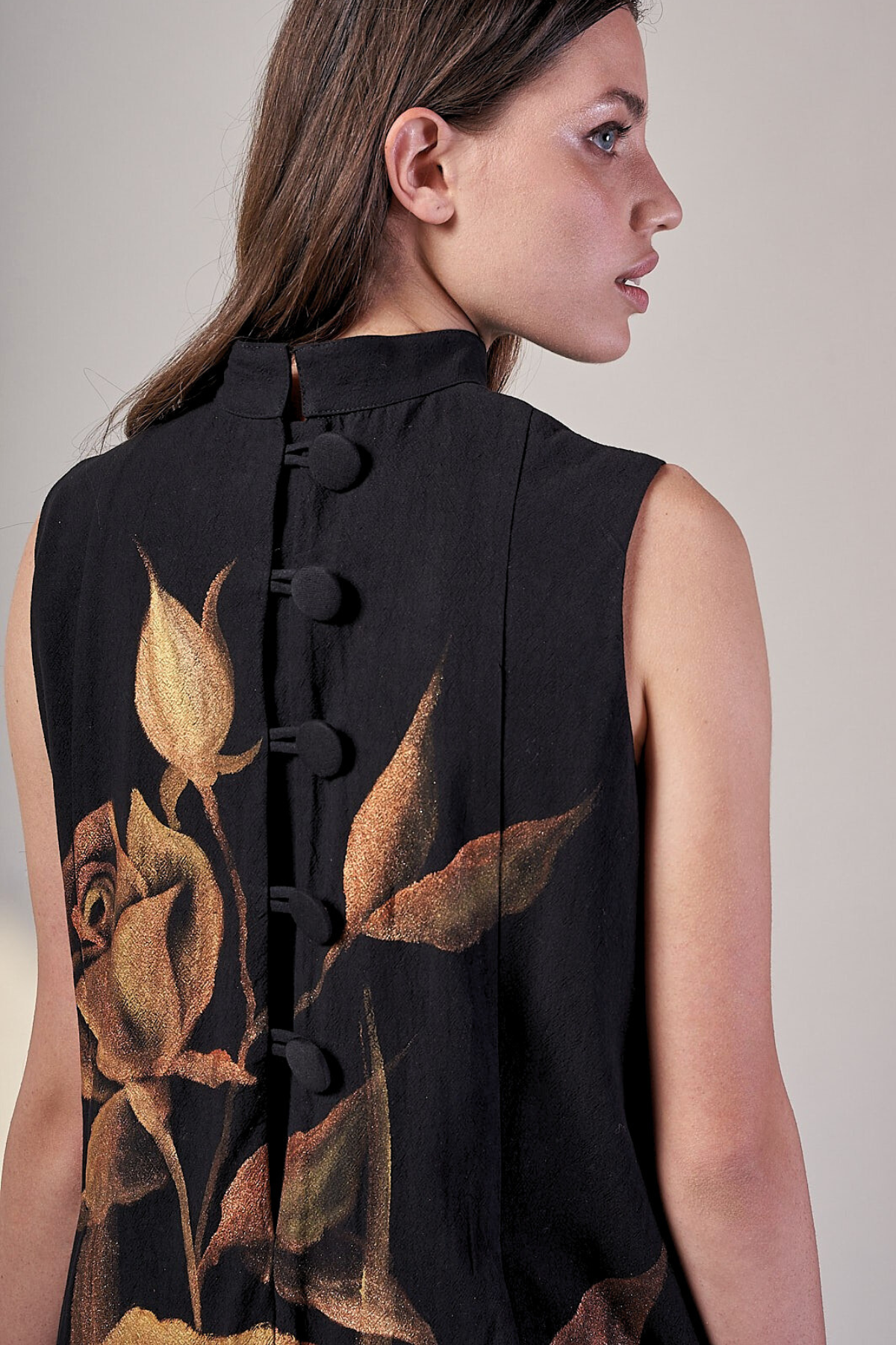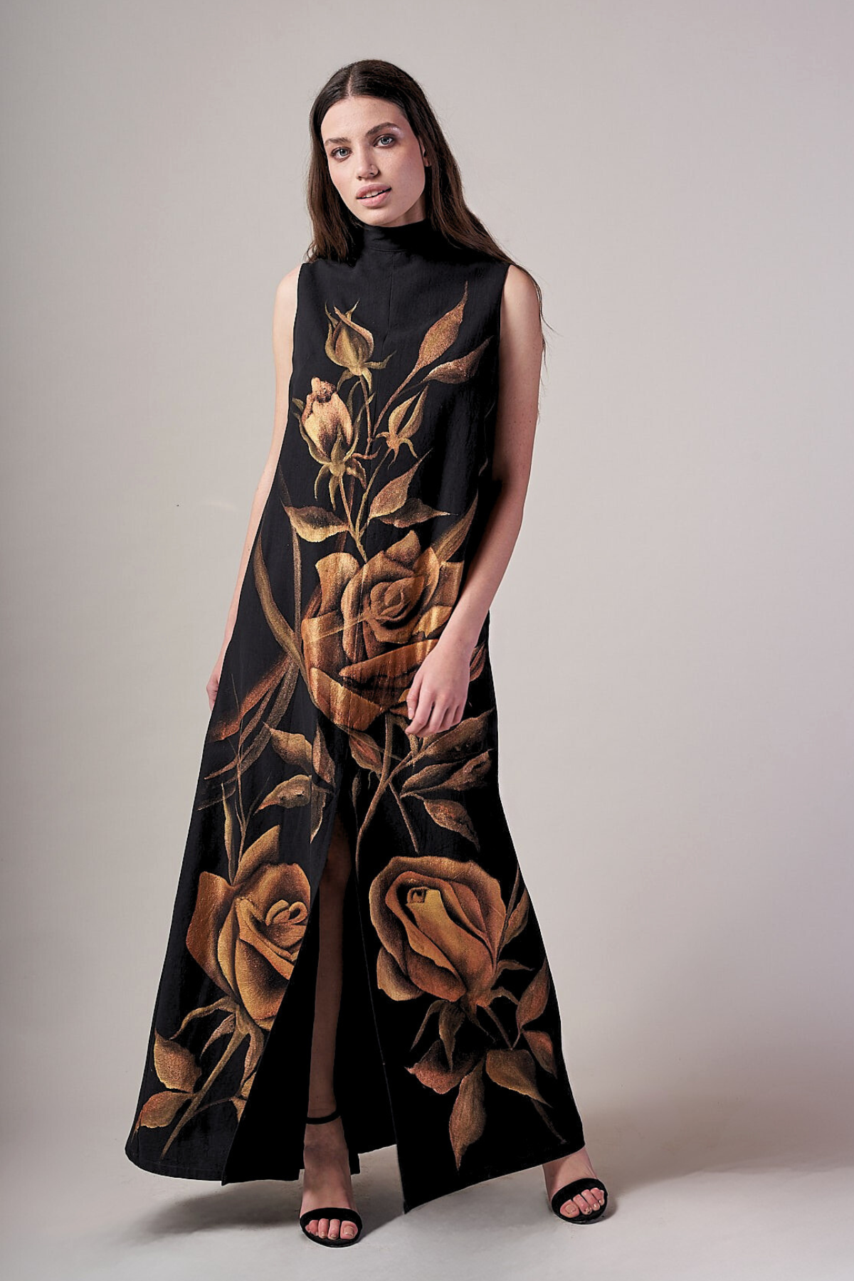 ABITO LUNGO COLLETTO ALLA COREANA DIPINTO A MANO - ROSAS ORO