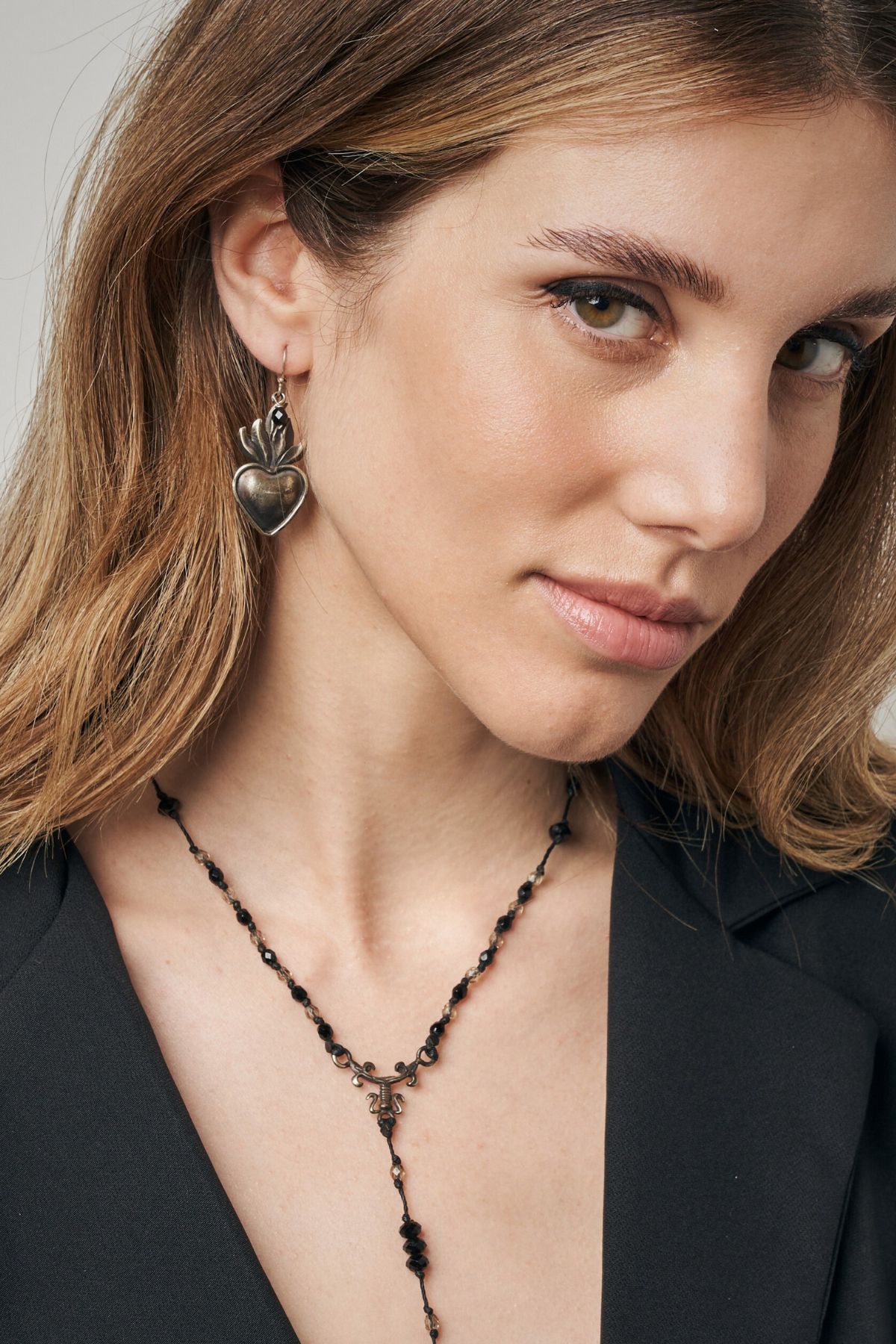 ORECCHINI SAGRADO CORAZÓN CON CRISTALLI NERI