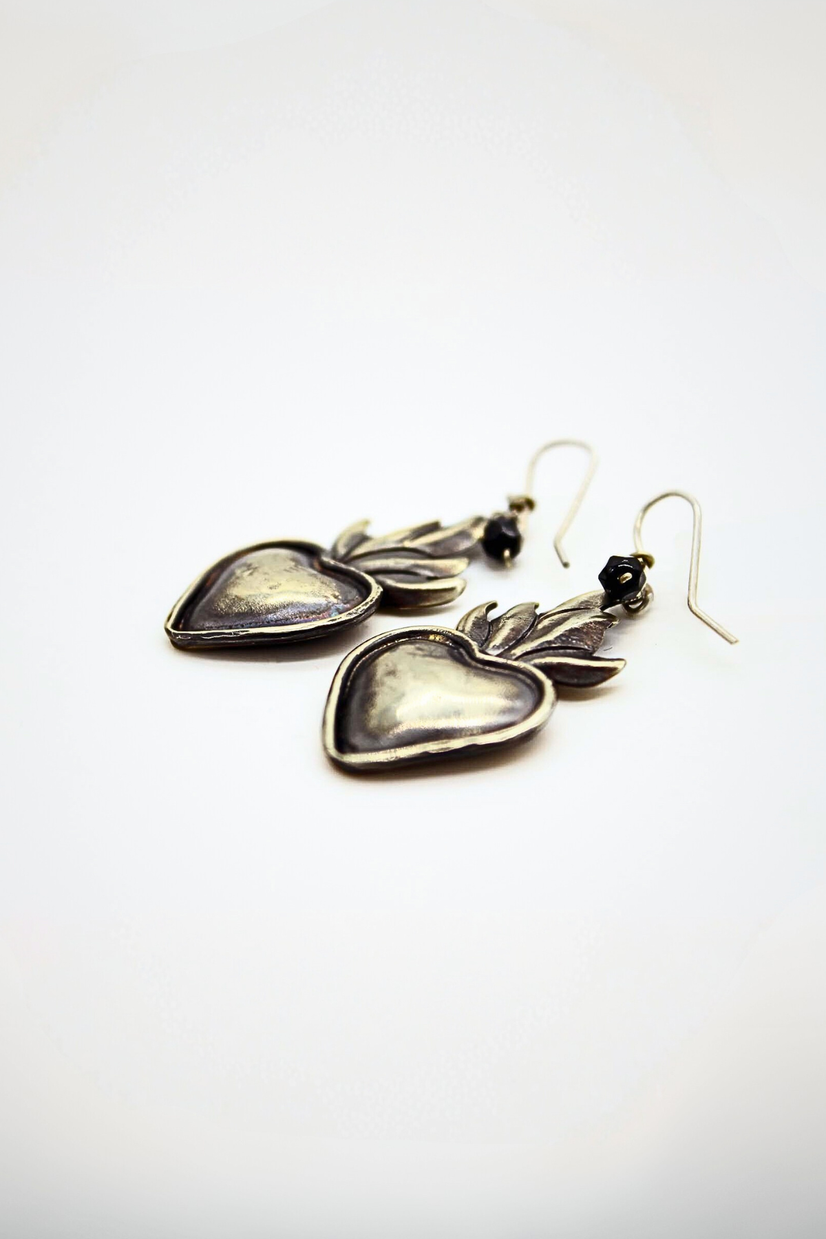 Gli orecchini a monachella in argento mostrano un meraviglioso Sacro Cuore ed un delicato cristallo nero sfaccettato a mano. Sono gioielli che combinano eleganza e semplicità diventando un must in qualsiasi collezione di gioielli.