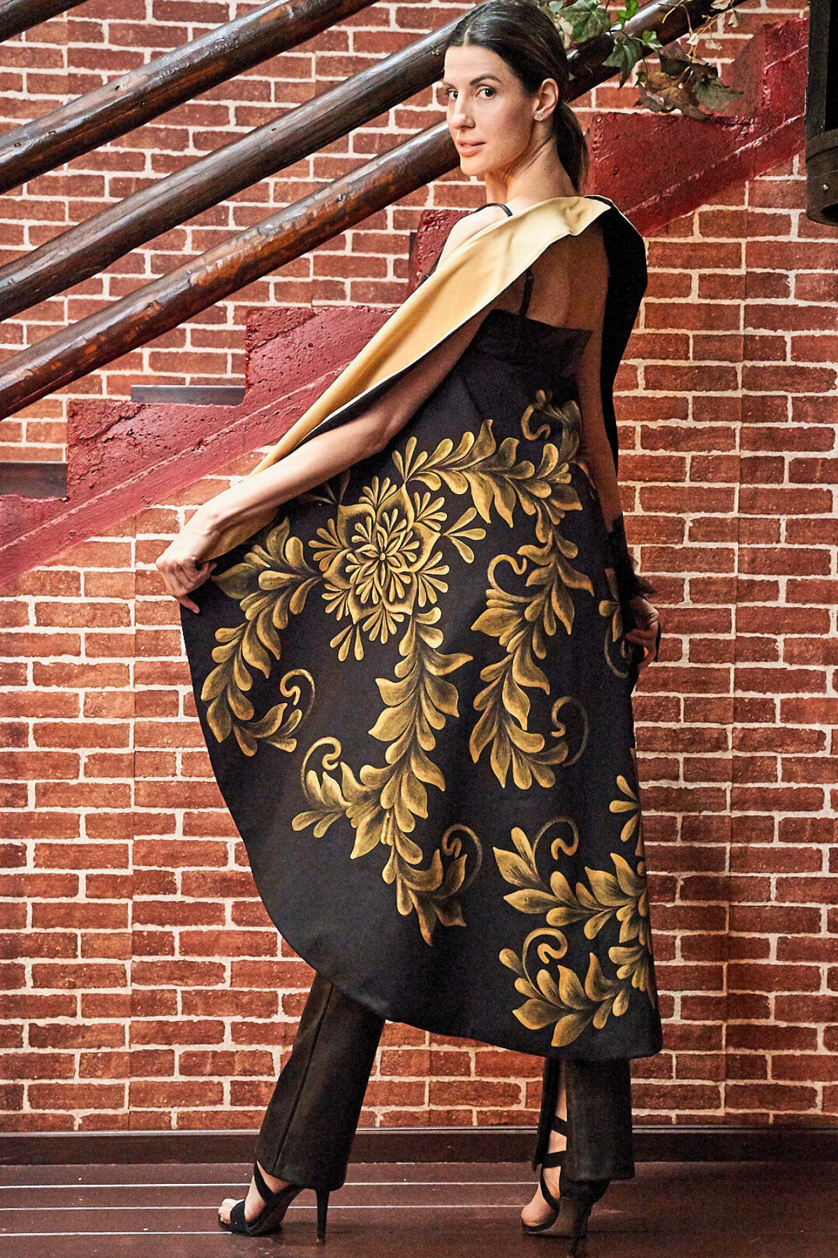 Indossa l’eleganza della Talavera e dei fiori in tonalità dorate con la mantella lunga della collezione Flor Talavera.