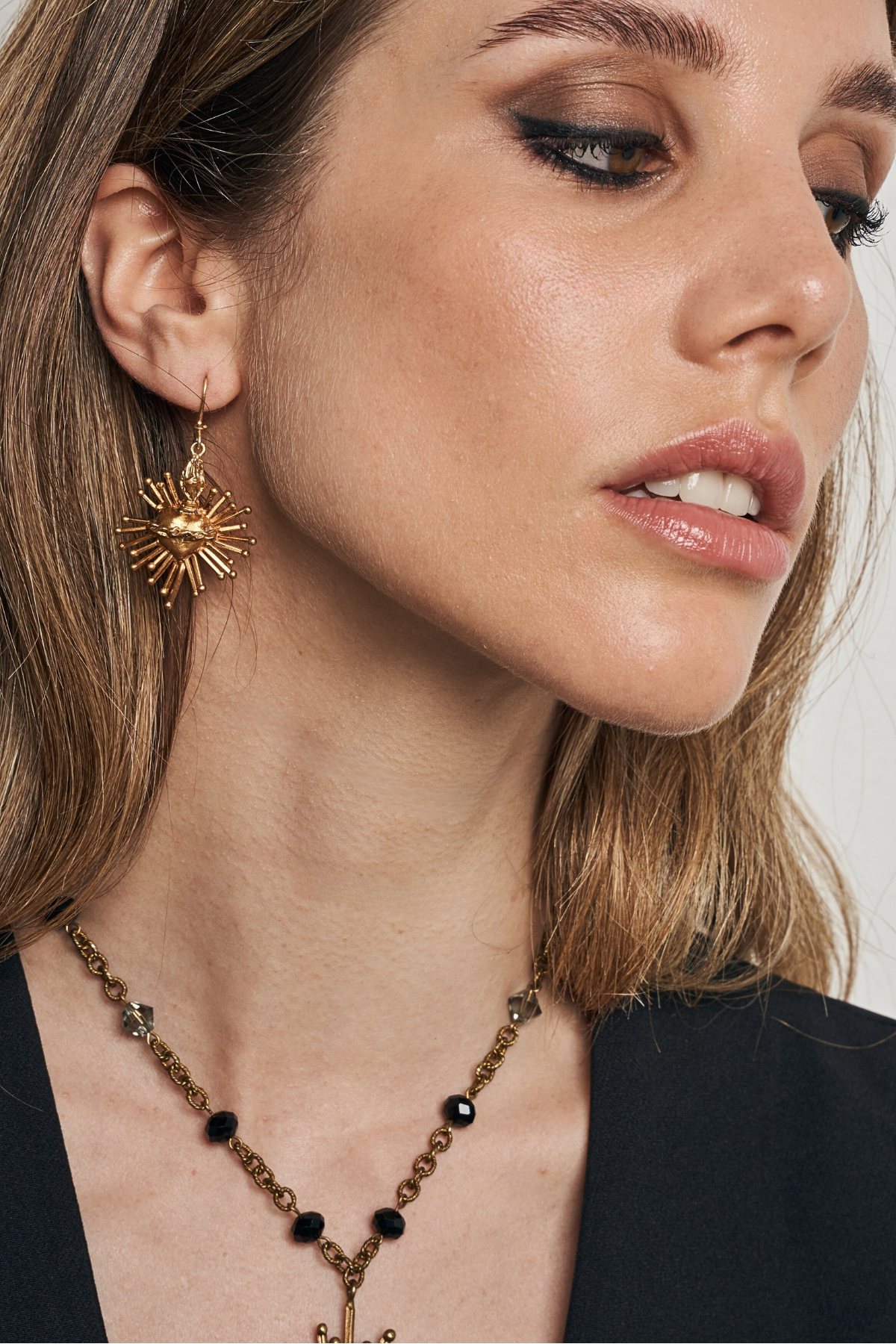Sii audace e alla moda con i nostri orecchini Sagrado Corazón, decorati con cristalli che gli rendono chic e splendidi.